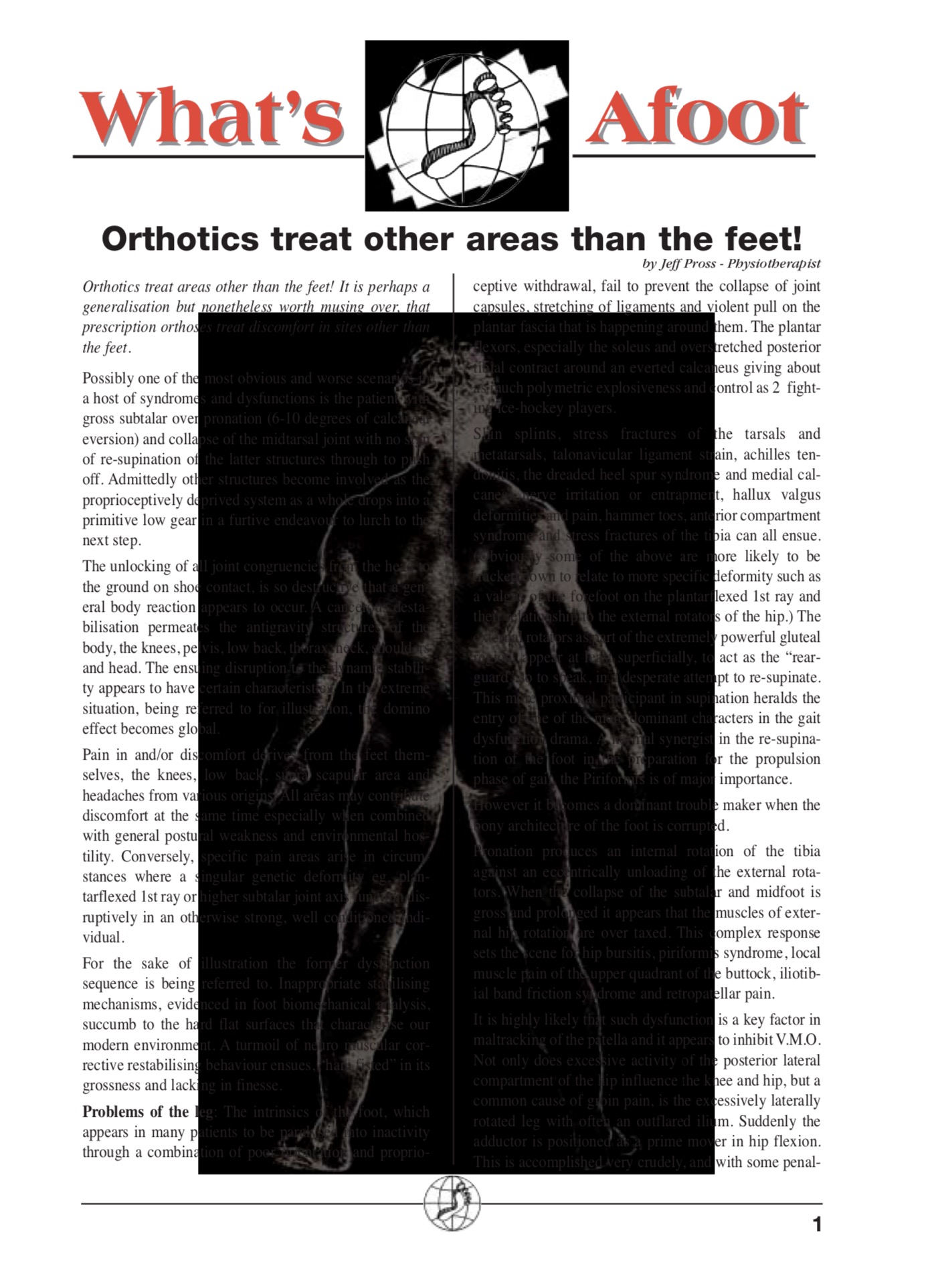 Orthotics treat areas other than the feet! It is perhaps a generalisation but nonetheless worth musing over, that prescription orthoses treat discomfo.....