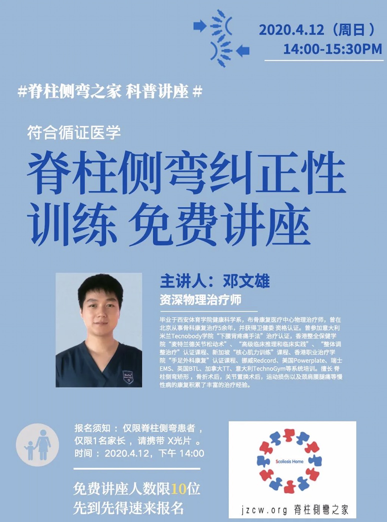 前交叉韧带重建术后康复、脊柱侧弯科普讲座,免费报名听干货!