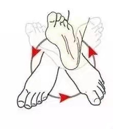 踝关节环转运动:以拇趾作为指针, 包括踝关节在内的顺时针、逆时针运动。