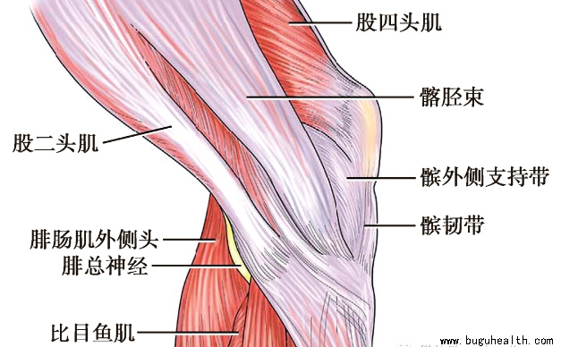 膝关节外侧也分三层。浅层为大腿深筋膜的延续,主要结构包括髂胫束、股二头肌及肌腱和髌外侧支持带。其中髂胫束在伸膝时紧张,屈膝时松弛。