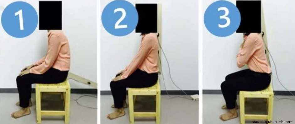 研究使用三种不同的坐姿坐持续超过一个小时包含。并用肌电图侦测腹内斜肌、腹外斜肌与腹横肌的活化,在这三个不同的坐姿中发现持续使用驼背坐姿1小时的姿势(坐姿1) 就足以让腹内斜肌与腹横肌变得无力(还记得这是我们在举起手跟脚最先稳定我们脊椎的肌肉吗?)