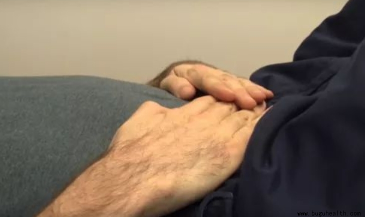 第二步,手放在肚脐以下区域