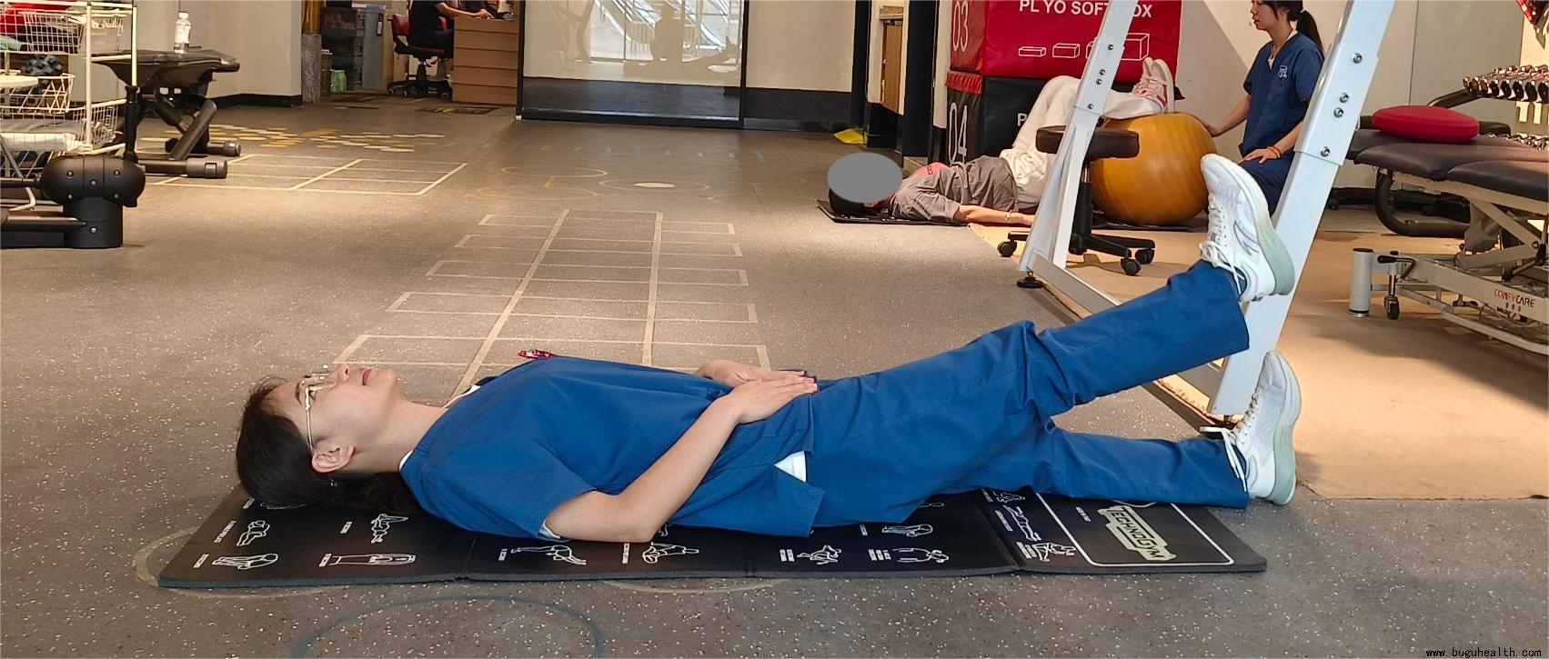 夹臀训练:仰卧位,下肢放松,双侧臀部向中间收紧。