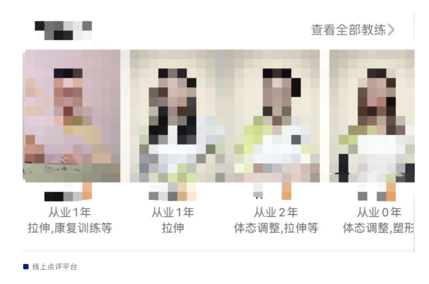 在线上点评平台搜索部分拉伸工作时发现,从业时间仅1-2年的教练,就已面向用户实施体态调整、康复训练的实操。