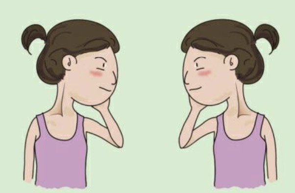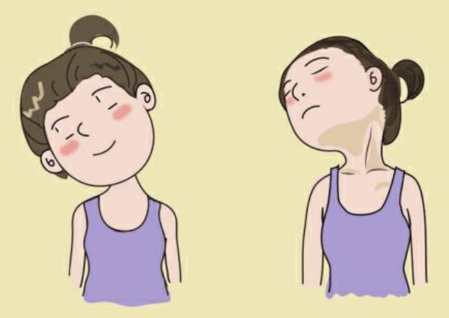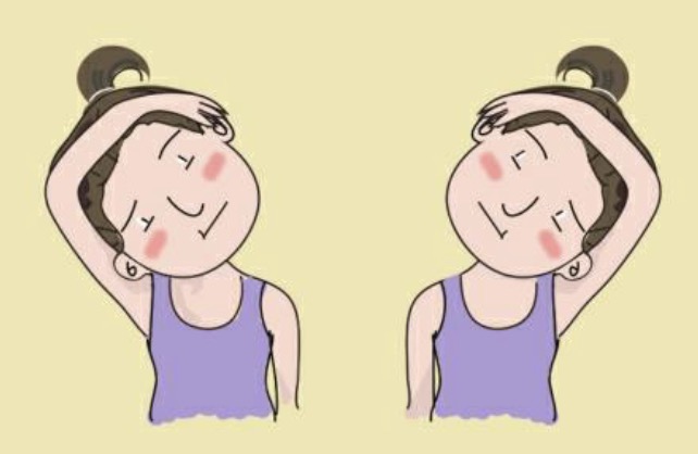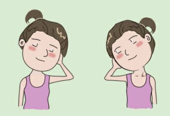 先将颈部缓慢向左侧屈,停留片刻,再缓慢向右侧屈,停留片刻,重复5~10次。