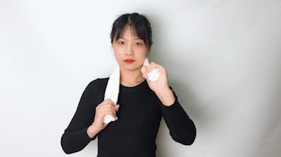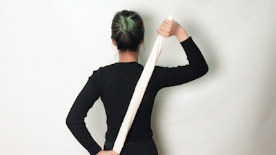 • 将毛巾放在后背,双手反向握住毛巾两端(毛巾搓背状);