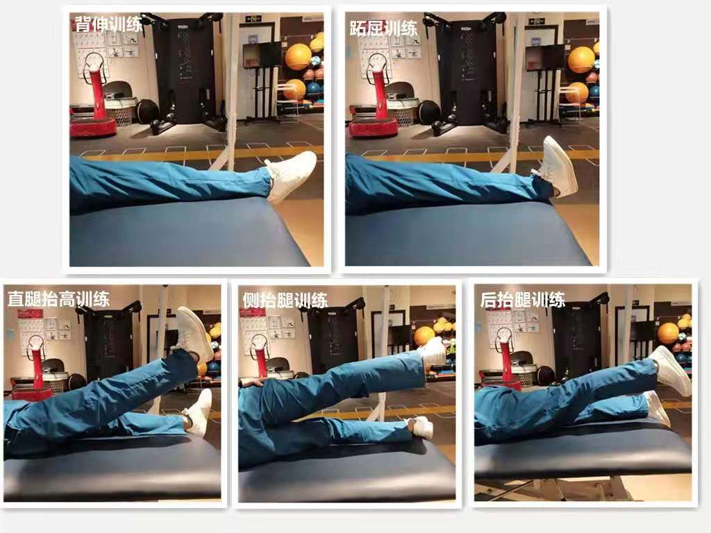 1)直腿抬高训练:在不加重关节疼痛的情况下进行,以增加股四头肌的肌力。