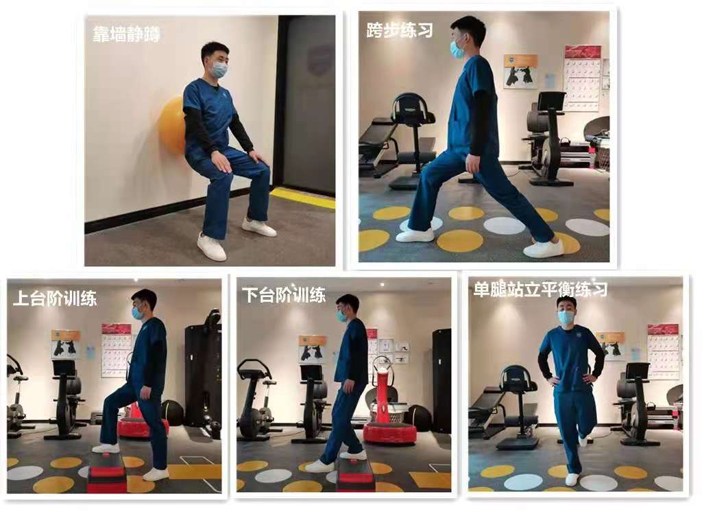 3)负重、平衡训练:3周后可逐步进行患肢不负重、部分负重及充分负重的站立、步行练习,可以用平衡板或者平衡垫行平衡功能训练。同时可以进行前后、侧向跨步练习,每天3-4组,每组10-15次。