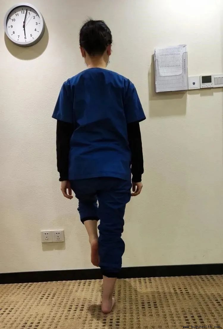 l 被检下肢单腿站立(可以用手轻轻扶墙以维持平衡),膝关节伸展