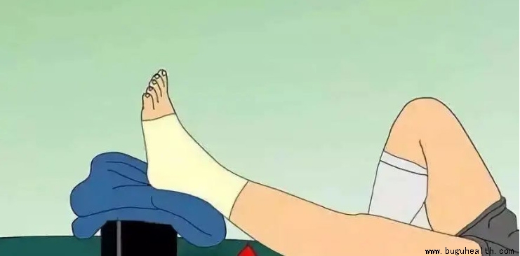 4.抬高患肢Elevation:把受伤的那只脚抬高超过心脏水平,减少静脉回流带来的肿胀。