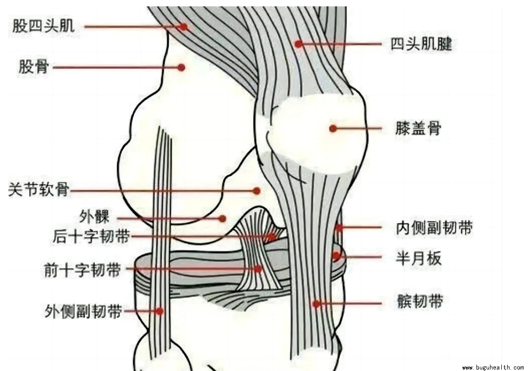 髌骨是全身最大的籽骨,上与股四头肌相连,下由髌韧带固定于胫骨结节。髌骨的关节面与股骨的内外髁相互形成髌股关节,膝关节屈伸时,髌骨在股骨内外髁间(即滑车)呈S形滑动。
