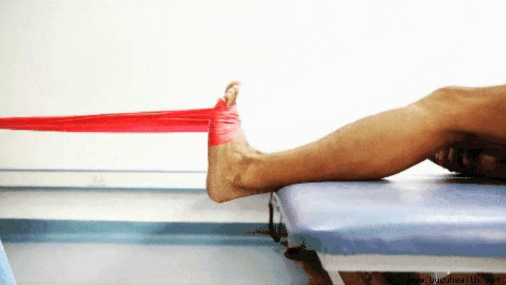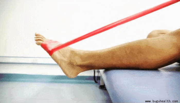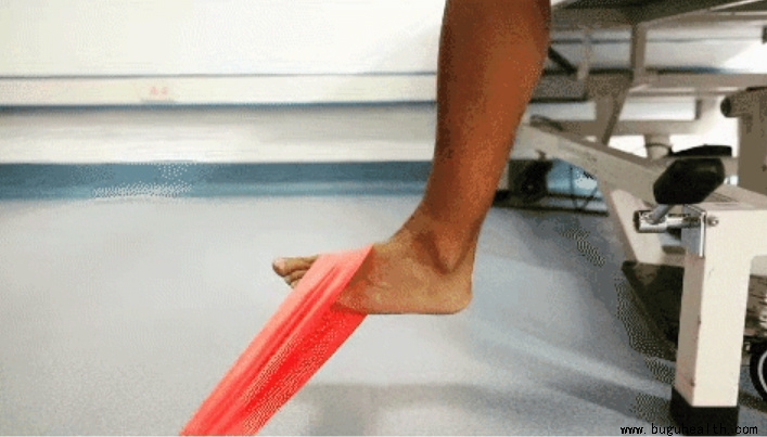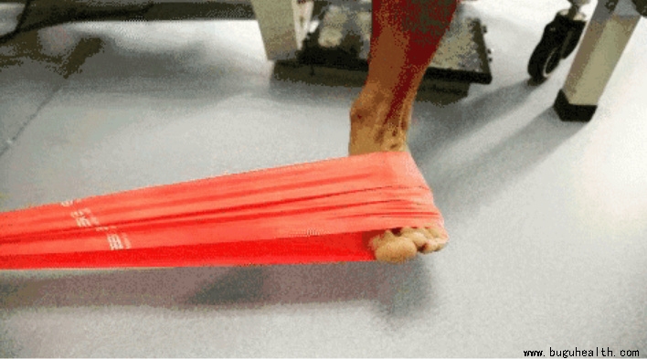 外部固定弹力带勾脚:每组10-15个(根据具体情况而定),尽量放慢速度,每次3-5组,一天3次。