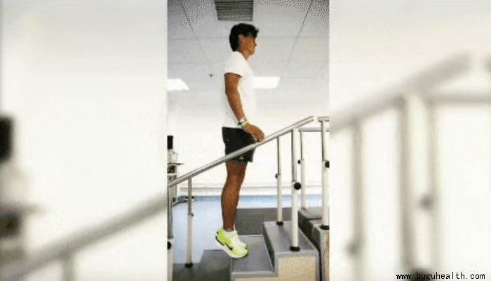 单脚踏板提踵:每组10-15个(根据具体情况而定),尽量放慢速度,每次3-5组,一天3次。