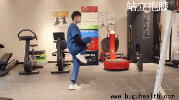 当我们站立时,屈膝将小腿抱住向腹部靠近,拉伸我们的臀部肌肉,但是身体一定要保持稳定,双侧重复进行,左右拉伸一次为一组,重复进行10组,充分拉伸我们的臀部肌肉。