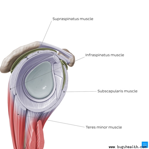 肩袖是附着在肩关节关节面周围的一组肌肉,包括冈上肌、冈下肌、小圆肌、肩胛下肌。他们四个就像一个衣服袖口一样,包绕着肩关节的肱骨头,所以被称为肩袖