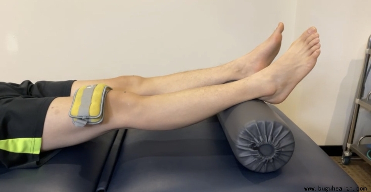 伸直的角度可以用一种简单的方式足跟垫起膝关节放松靠重力逐渐将膝关节压直保持10分钟2/这个动作既是训练动作也是检查动作训练后观察双膝伸直角度是否一致从侧方观察膝关节跟床面之间的距离双侧是否一致