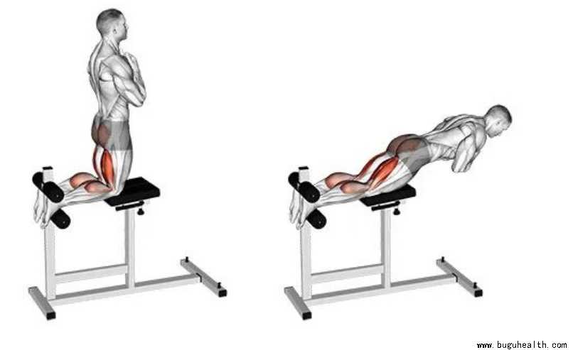 仰卧,脚后跟和小腿下端放在瑞士球上。建立核心支撑,抬起骨盆,保持脊柱挺直。保持核心稳定的情况下,屈曲膝关节,将小腿往回收。在动作的顶端,鞋底将在球上,大腿始终和躯干保持平行。反方向回到起始位,然后进行下一次。不过,用上瑞士球之后,只做离心部分就不太可行了。自重的腘绳肌离心训练,主要目的是强化腘绳肌的离心收缩能力和耐力,每次练习可以执行多一些的组数和次数,比如5组*12次。