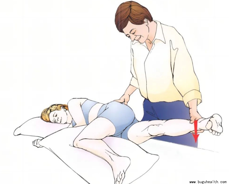 3. 当治疗师试图将患者腿抬离床面时,嘱患者与治疗师对抗。放松并重复几次。