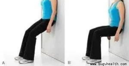 2.平时加强膝关节肌力训练增加稳定性也是非常重要的,我给大家推荐的一个动作是靠墙静蹲。