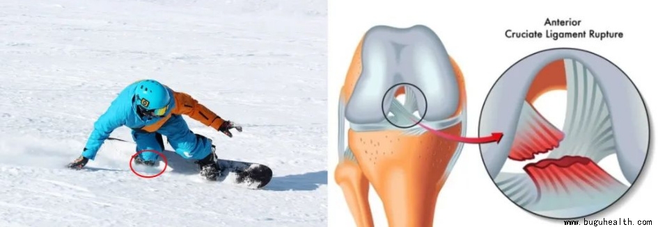 不管是单板还是双板,滑雪时脚会锁在滑雪板上,力汇聚在膝关节,滑行时旋转、转身、急停等动作会引发膝盖损伤。