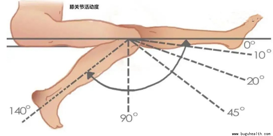 135°-150°:抱腿,坐在床上,后背靠墙,双手抱住伤腿,伤腿放松,使伤腿往身体方向移动,保持最大角度5分钟。