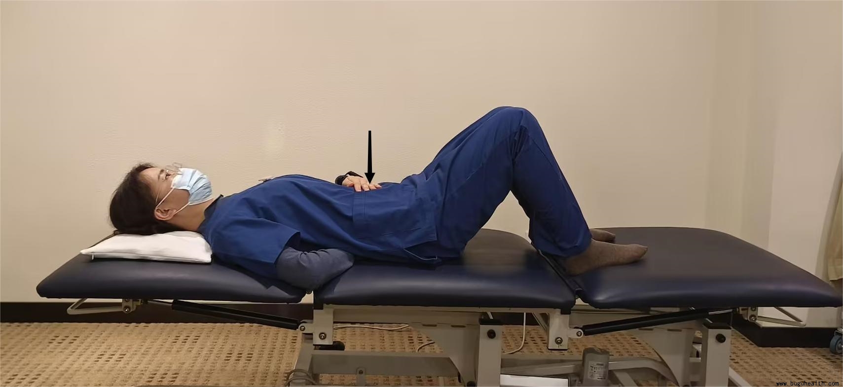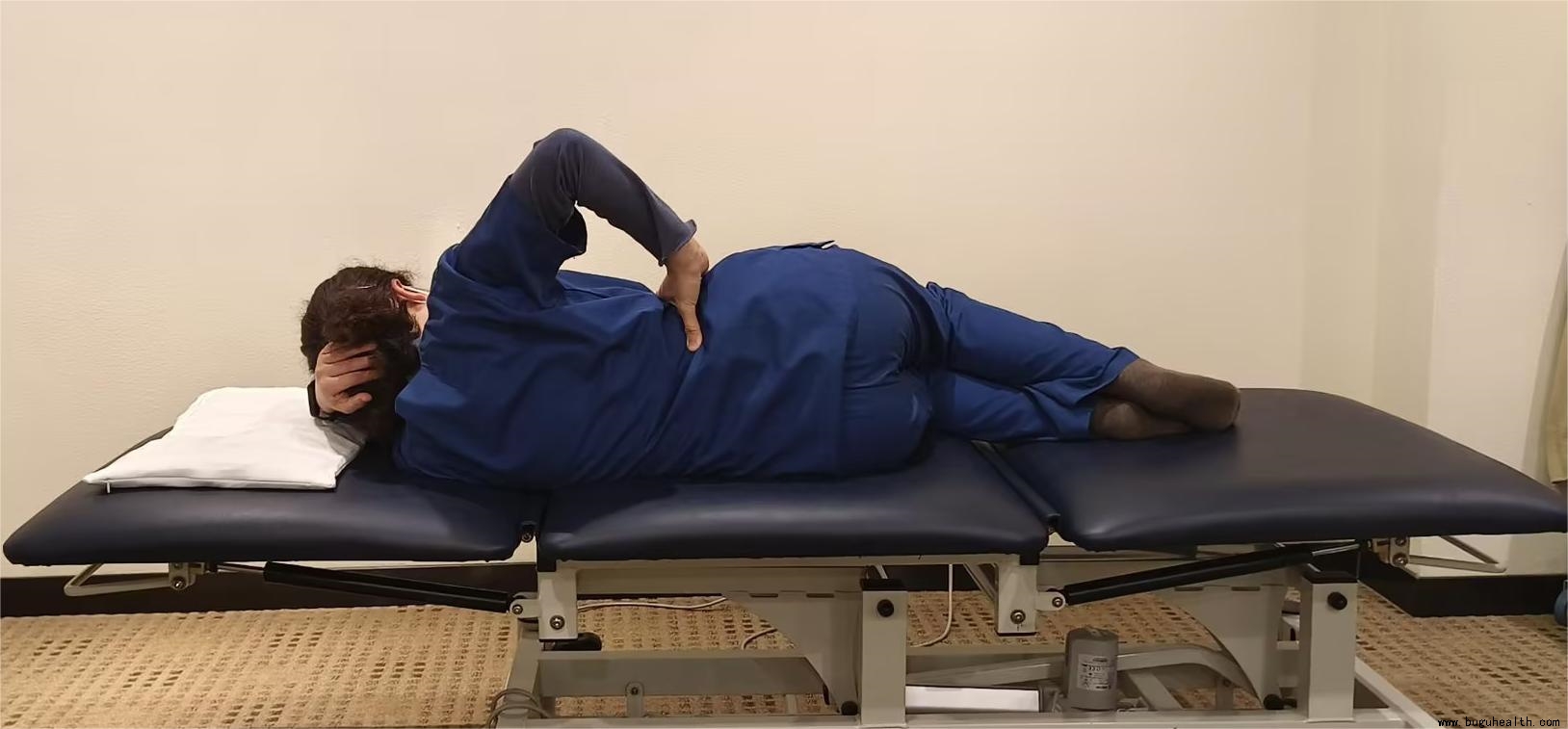 练习方法:仰卧或者侧卧,一手用手指放在需要练习的脊椎旁边,然后鼓起肌肉去对抗手指,反复继续练习。