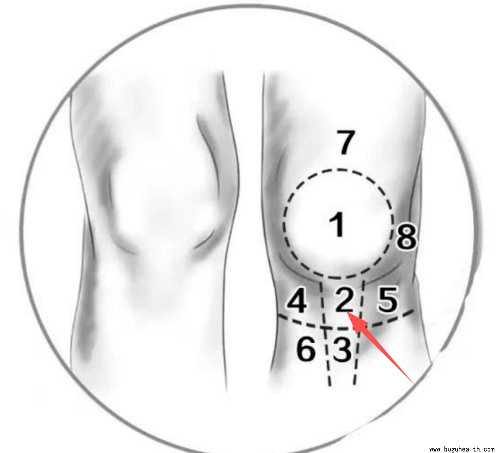 2区是髌腱所在的部位,是连接髌骨和胫骨的肌腱,负责吸收、缓冲和传递压力至小腿。然而,反复跳跃和屈伸动作会导致摩擦和牵扯,可能导致微小损伤并引发髌腱炎。其最大特点是屈膝疼痛,常被误认为是关节炎。