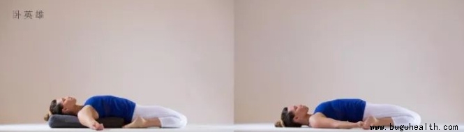 卧英雄式:膝盖并拢,脚踝在臀部外侧,仰卧在折叠的毛毯上,双手往两侧打开,保持5分钟如果需要加大难度,把毛毯拿开