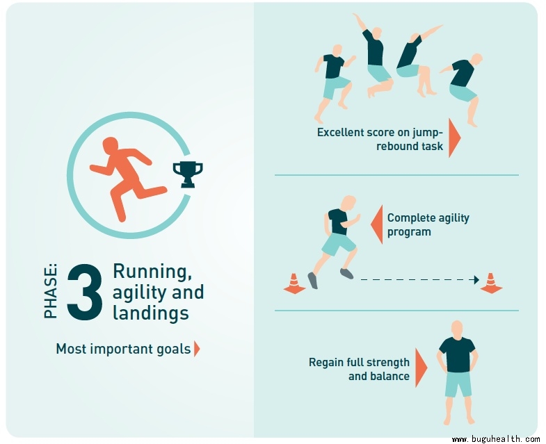 这一阶段需要进行体力要求较高的运动,以确保安全回归运动。对于运动,康复师会帮助你进行运动专项特定的动作训练,以减少未来运动中受伤的风险。虽然这是康复的最后阶段,但之后长期继续进行拉伸和力量训练仍然对于维持运动状态很重要。