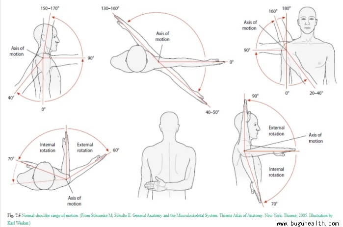 肩关节正常关节活动度自查: