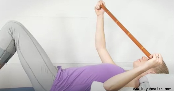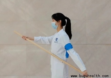 关节运动和柔韧性练习逐步恢复肩部的正常关节运动范围。可以通过体操棒来辅助打开关节活动度。如下图:体操棒辅助内外旋,体操棒辅助前屈等。