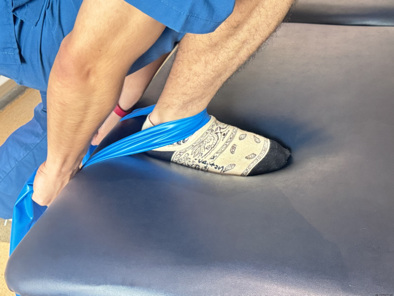 踝关节关节松动:利用毛巾、弹力带进行踝关节处的关节松动