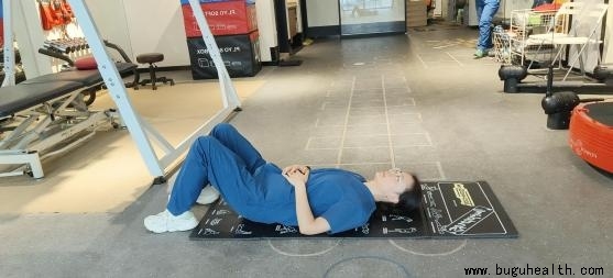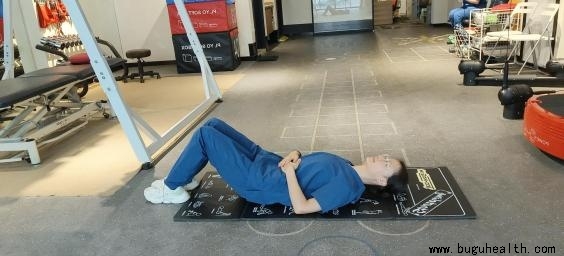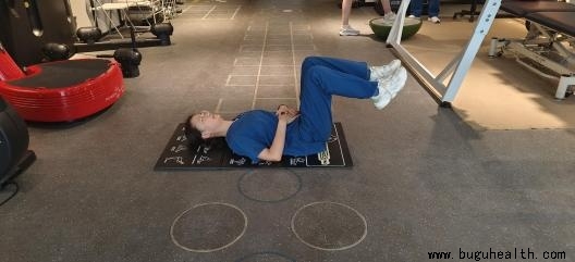 仰卧位,屈膝屈髋,腰部向下压,保持30s,过程中注意不要憋气,感受腹部肌肉发力感。