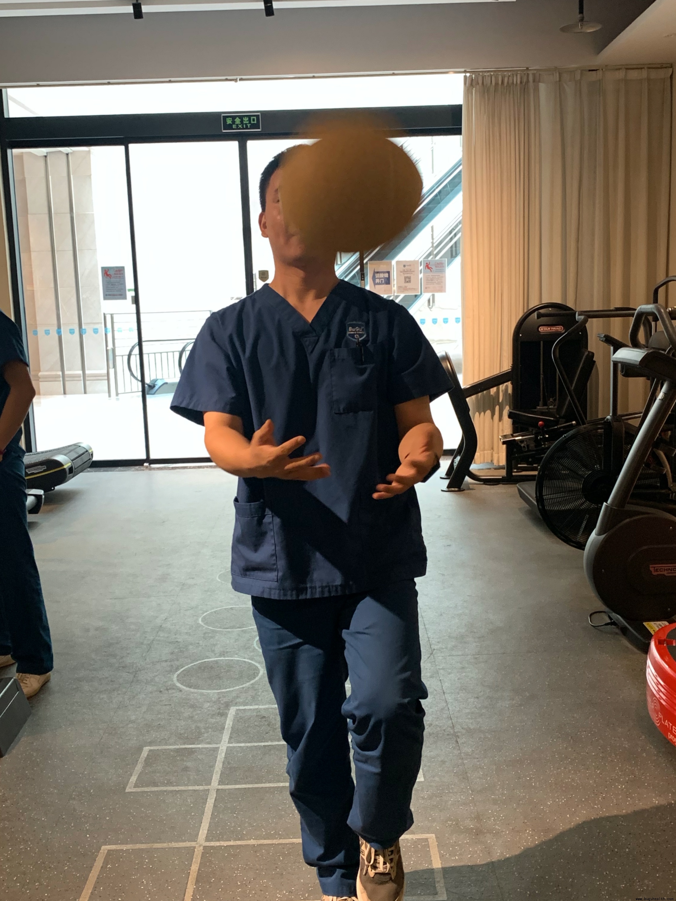 单腿站抛接球:单腿站立进行抛接球训练,通过外部干扰进一步增加下肢的平衡控制能力。