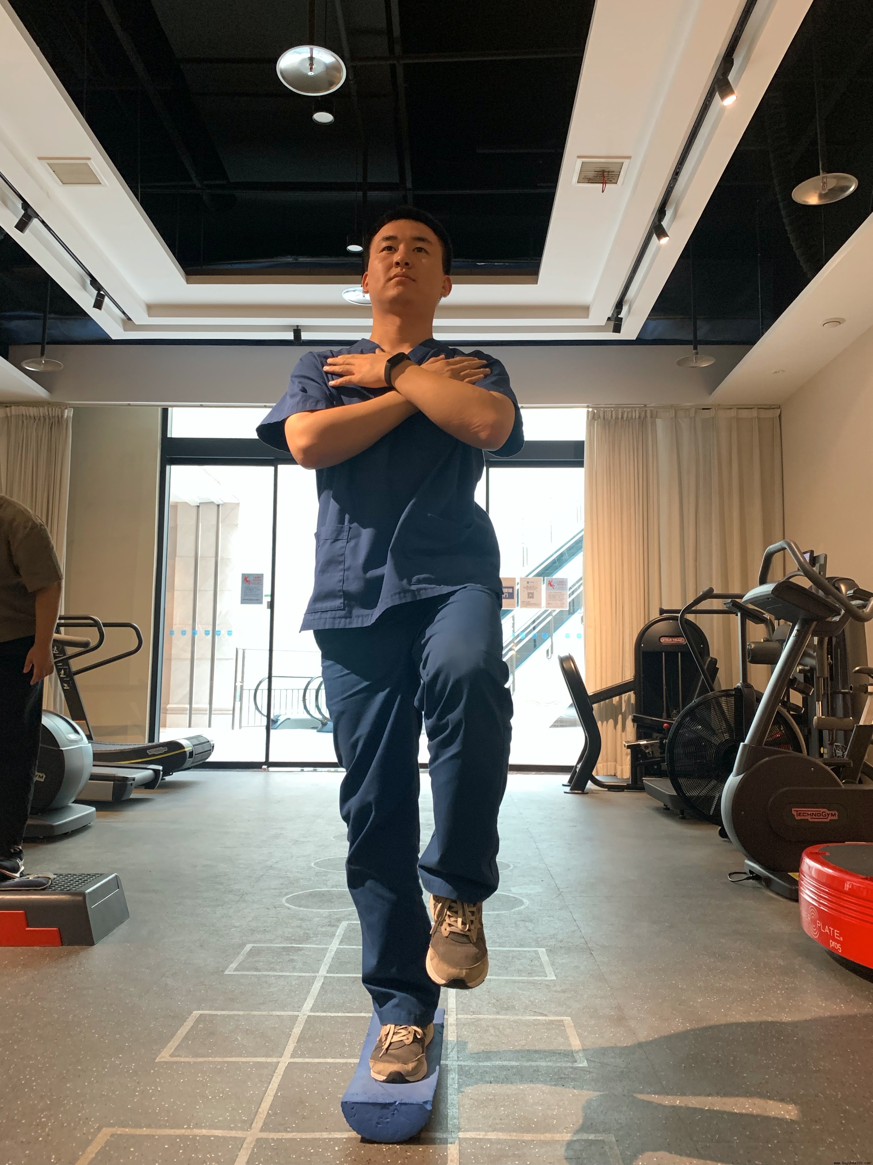 单脚站立:这是最基本的平衡训练方法之一。在平坦的地面上,尝试用受伤的脚踝单脚站立,保持身体稳定。初期可以双手侧平举以增加稳定性,随着训练的深入,可以尝试双手抱胸前或闭眼站立,以增加难度。